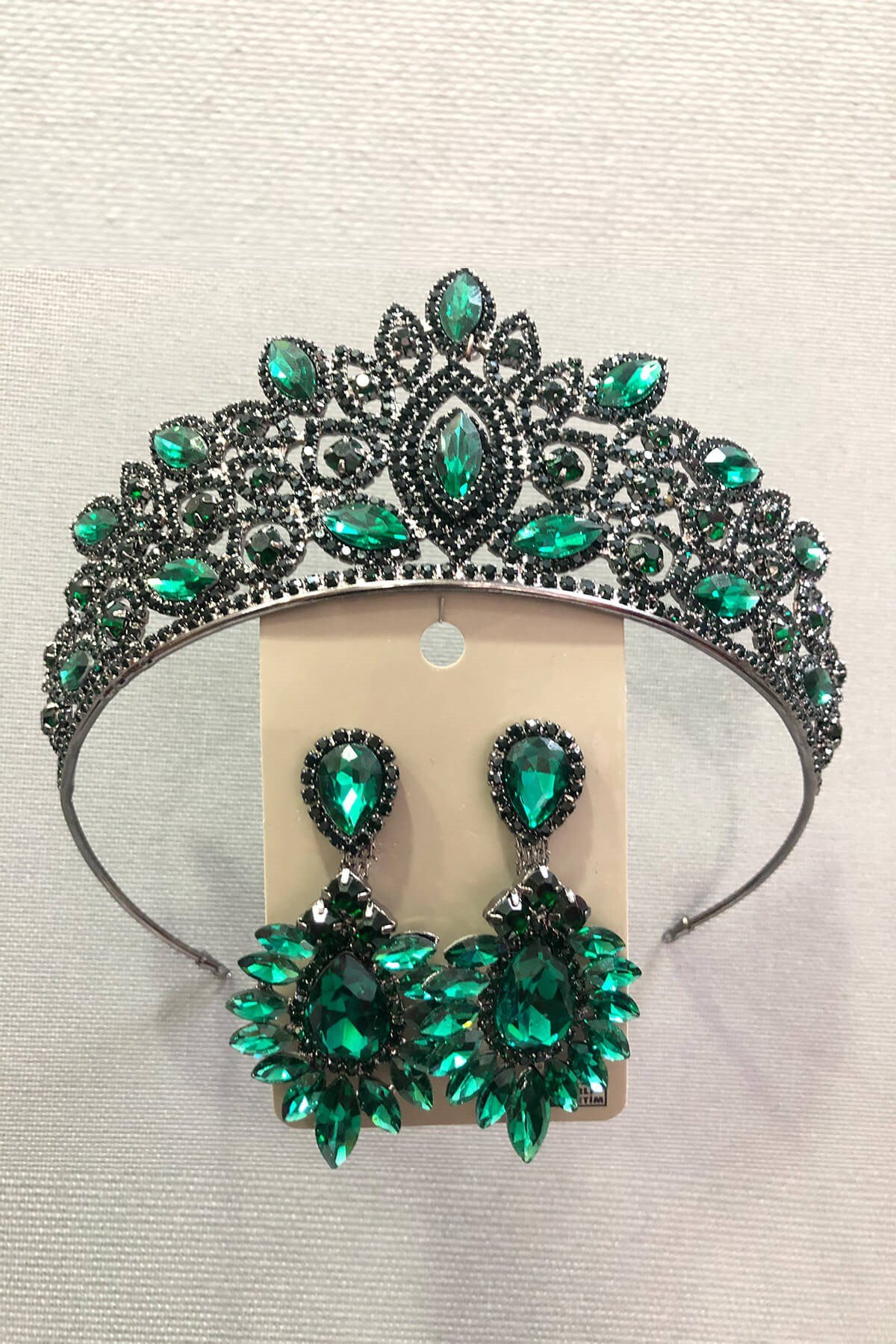 Zümrüt Yeşili Kına Tacı ve Küpe Takımı (TAC-213)